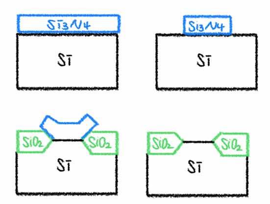 LOCOS 공정의 문제를 해결하기 위해 고안된 방법이 STI입니다.