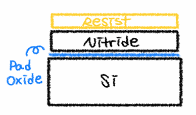1. Si 위 Pad Oxide, Ntirde, Resist 증착