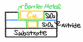 또한, Si와 높은 반응성에 대한 문제를 해결하기 위해 Barrier Metal을 증착해줍니다.