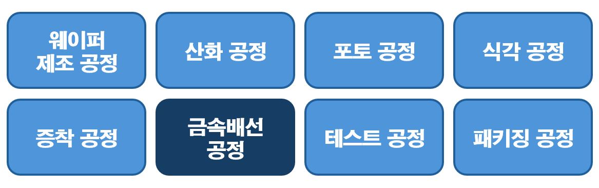 이번 포스트에서는 8대 공정 중 금속배선 공정에 대해서 알아보도록 하겠습니다.