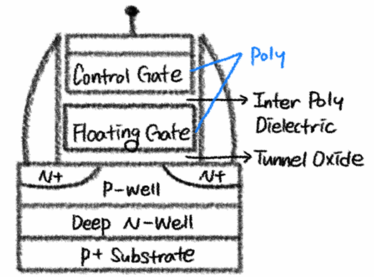 Floating Gate Transistor는 다음과 같은 구조로 이루어져 있습니다.