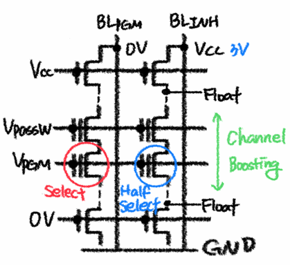 즉, 높은 전압을 인가하지 않아도 Substrate의 전압을 조절하여 Program이 발생하는 것을 방지할 수 있습니다.