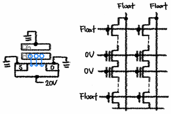 Floating Gate에 전자가 Trap되어 Program을 하게 됩니다.